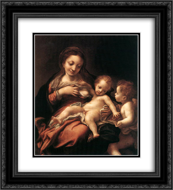 Virgin and Child with an Angel 20x22 Black Ornate Wood Framed Art Print Poster with Double Matting by Correggio