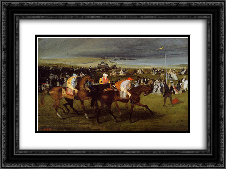 At the Races. the Start 24x18 Black Ornate Wood Framed Art Print Poster with Double Matting by Degas, Edgar