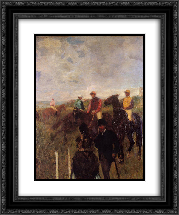 At the Races 20x24 Black Ornate Wood Framed Art Print Poster with Double Matting by Degas, Edgar