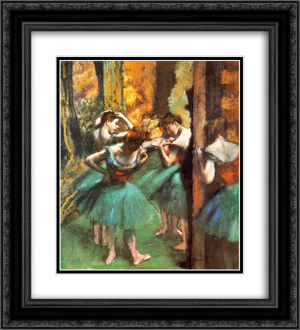 Dancers, Pink and Green 20x22 Black Ornate Wood Framed Art Print Poster with Double Matting by Degas, Edgar