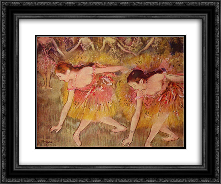 Dancers Bending Down 24x20 Black Ornate Wood Framed Art Print Poster with Double Matting by Degas, Edgar