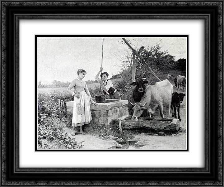 Paysannerie 24x20 Black Ornate Wood Framed Art Print Poster with Double Matting by Debat-Ponsan, Jacques