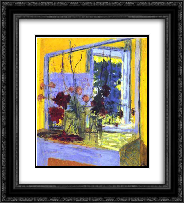 Flowers on a fireplace in Clayes 20x22 Black Ornate Wood Framed Art Print Poster with Double Matting by Vuillard, Edouard