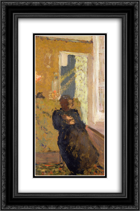 Seated Woman Dressed in Black 16x24 Black Ornate Wood Framed Art Print Poster with Double Matting by Vuillard, Edouard