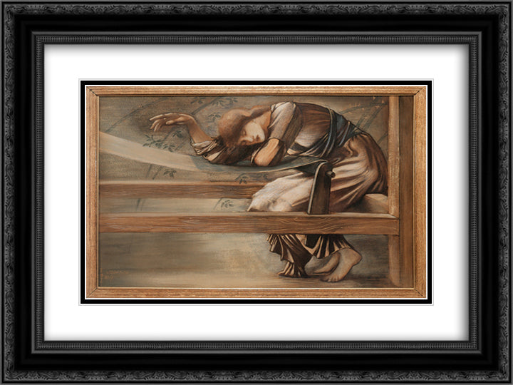 Study for the Garden Court 24x18 Black Ornate Wood Framed Art Print Poster with Double Matting by Burne Jones, Edward