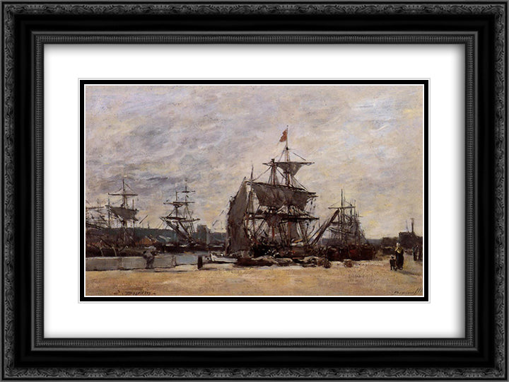Deauville, Docked Boats 24x18 Black Ornate Wood Framed Art Print Poster with Double Matting by Boudin, Eugene