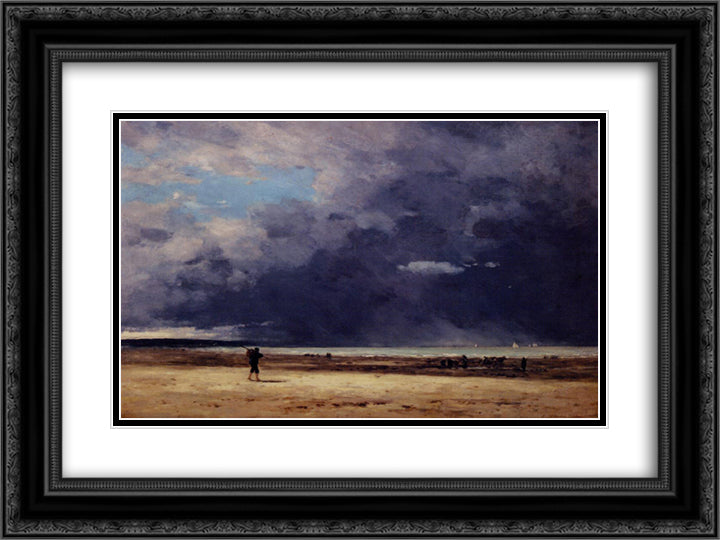 Deauville, Low Tide 24x18 Black Ornate Wood Framed Art Print Poster with Double Matting by Boudin, Eugene