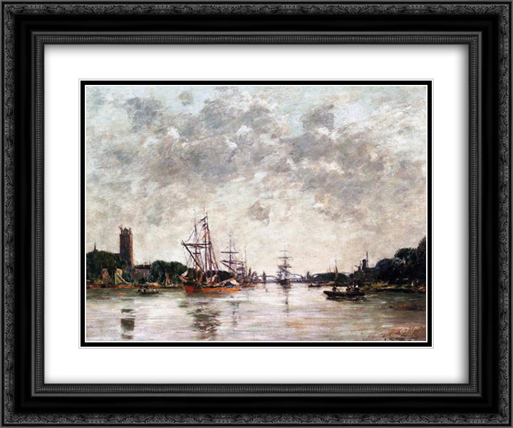 Dordrecht, La Meuse, View of Swandrecht 24x20 Black Ornate Wood Framed Art Print Poster with Double Matting by Boudin, Eugene