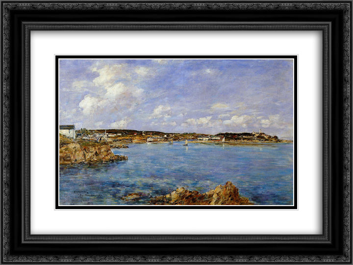 Douarnenez, the Bay, View of Tristan isle 24x18 Black Ornate Wood Framed Art Print Poster with Double Matting by Boudin, Eugene