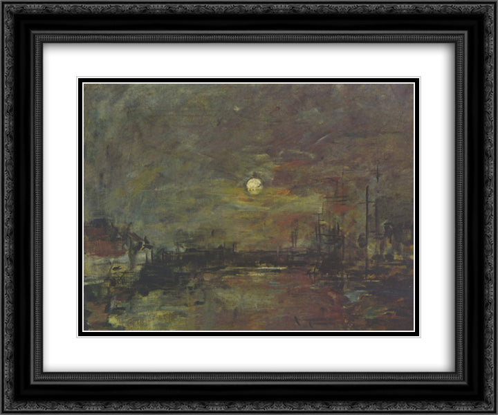 Dusk over the port of Le Havre 24x20 Black Ornate Wood Framed Art Print Poster with Double Matting by Boudin, Eugene