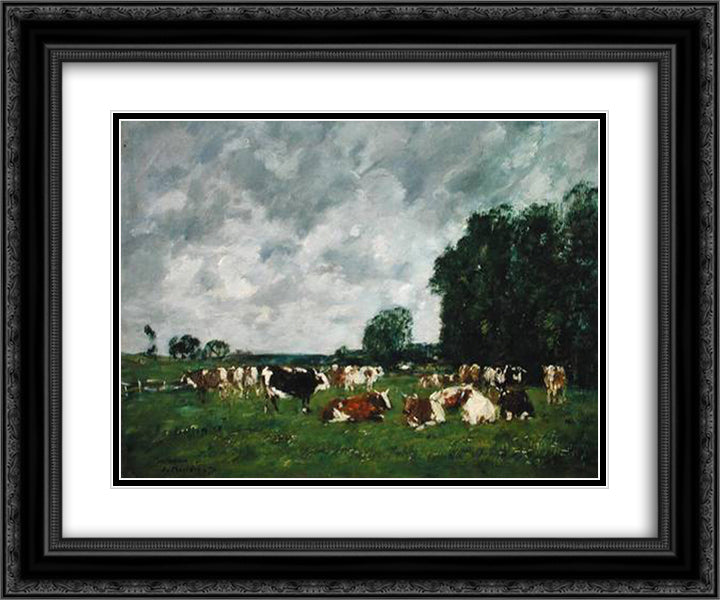 Fields in Fervaques 24x20 Black Ornate Wood Framed Art Print Poster with Double Matting by Boudin, Eugene