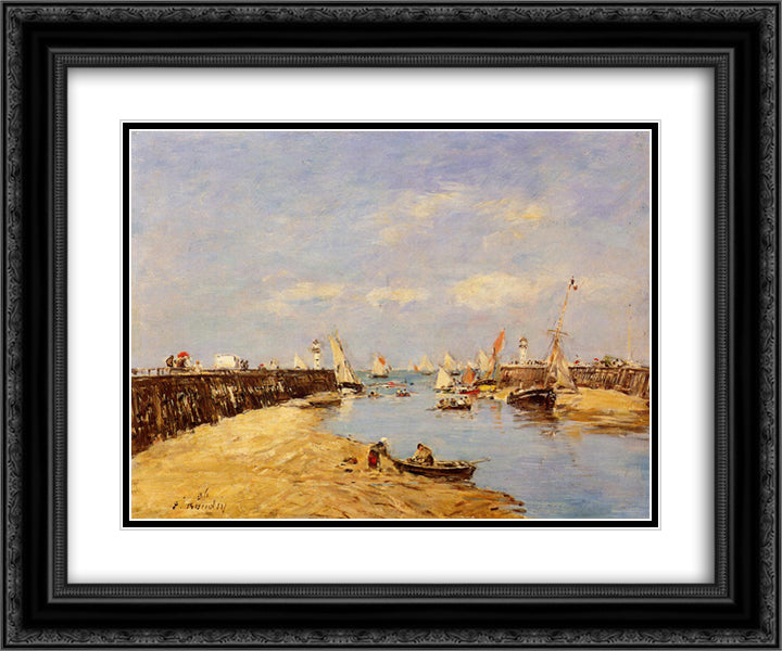 Trouville, the Jetty and the Basin 24x20 Black Ornate Wood Framed Art Print Poster with Double Matting by Boudin, Eugene