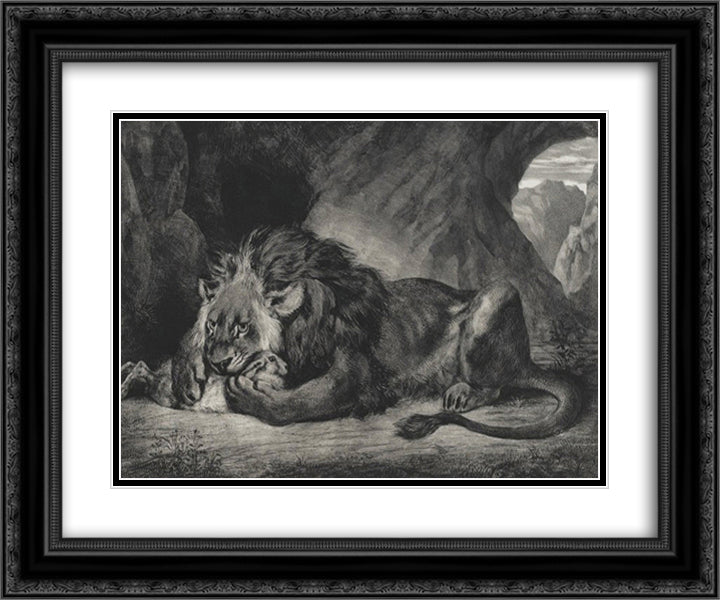 Lion of the Atlas 24x20 Black Ornate Wood Framed Art Print Poster with Double Matting by Delacroix, Eugene