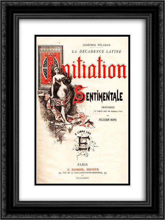Front Cover of Josephin Peladan's Novel 'Initiation Sentimentale' 18x24 Black Ornate Wood Framed Art Print Poster with Double Matting by Rops, Felicien