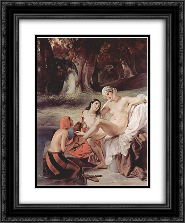 Bathing Bathsheba 20x24 Black Ornate Wood Framed Art Print Poster with Double Matting by Hayez, Francesco