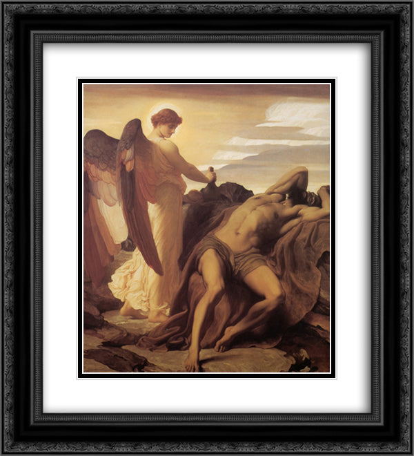 Elijah in the Wilderness 20x22 Black Ornate Wood Framed Art Print Poster with Double Matting by Leighton, Frederic