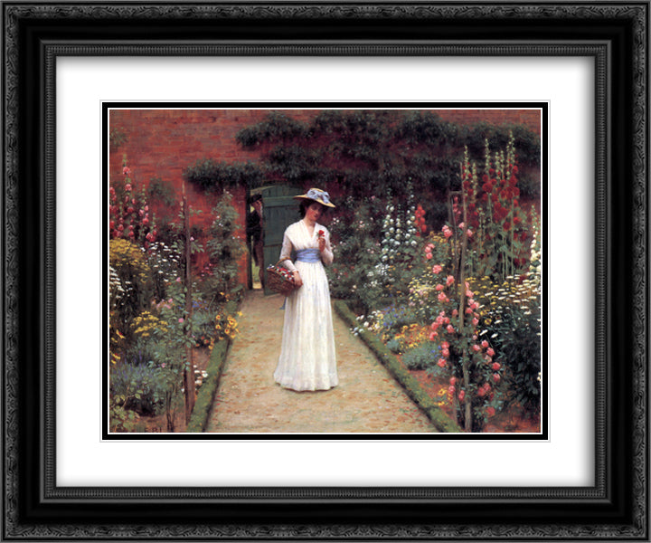 Lady in a Garden 24x20 Black Ornate Wood Framed Art Print Poster with Double Matting by Leighton, Frederic