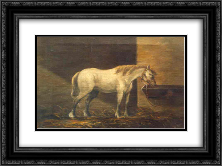 Horse in the Barn 24x18 Black Ornate Wood Framed Art Print Poster with Double Matting by Tattarescu, Gheorghe