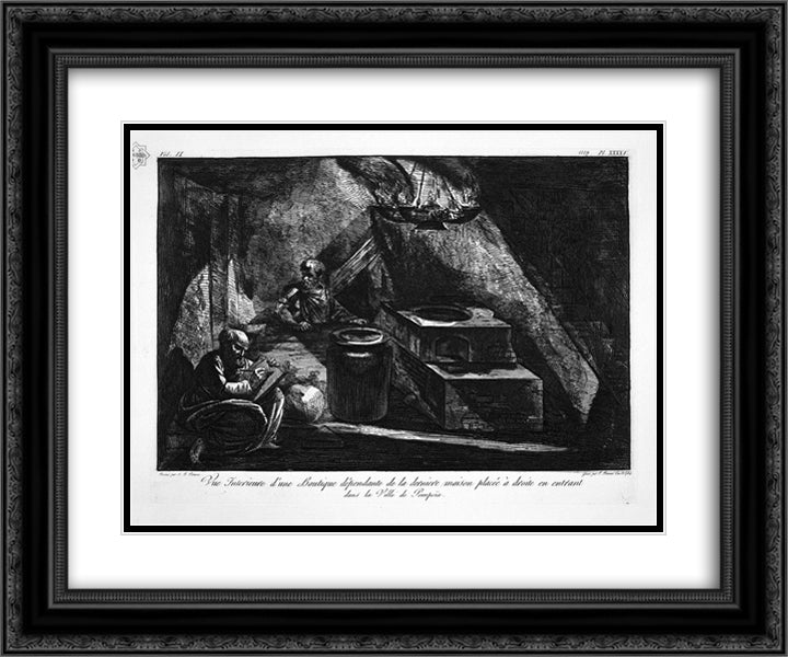 General map of the continuation of the road and factories adjacent to the House of the Surgeon 24x20 Black Ornate Wood Framed Art Print Poster with Double Matting by Piranesi, Giovanni Battista