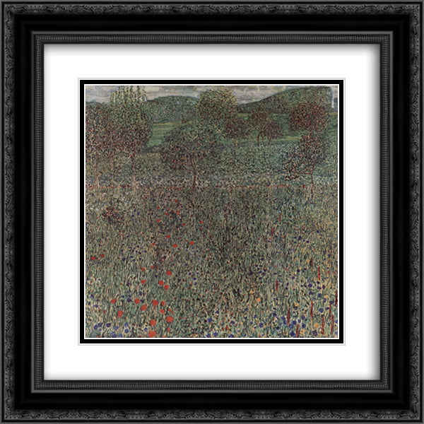 Blooming field 20x20 Black Ornate Wood Framed Art Print Poster with Double Matting by Klimt, Gustav