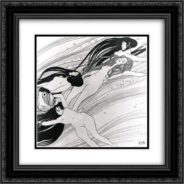 Fishblood 20x20 Black Ornate Wood Framed Art Print Poster with Double Matting by Klimt, Gustav