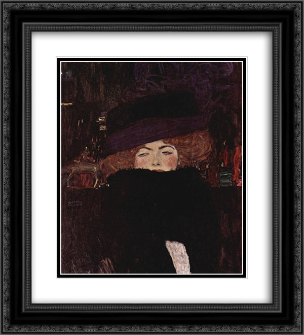 Lady with Hat and Featherboa 20x22 Black Ornate Wood Framed Art Print Poster with Double Matting by Klimt, Gustav