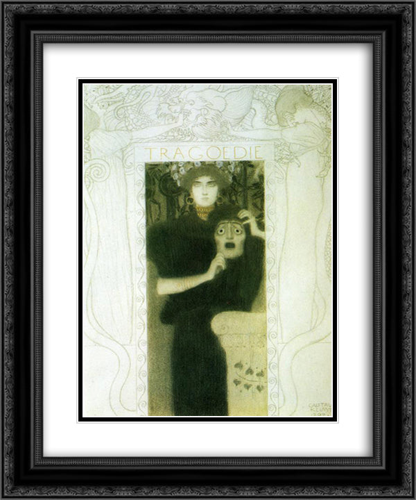Tragedy 20x24 Black Ornate Wood Framed Art Print Poster with Double Matting by Klimt, Gustav