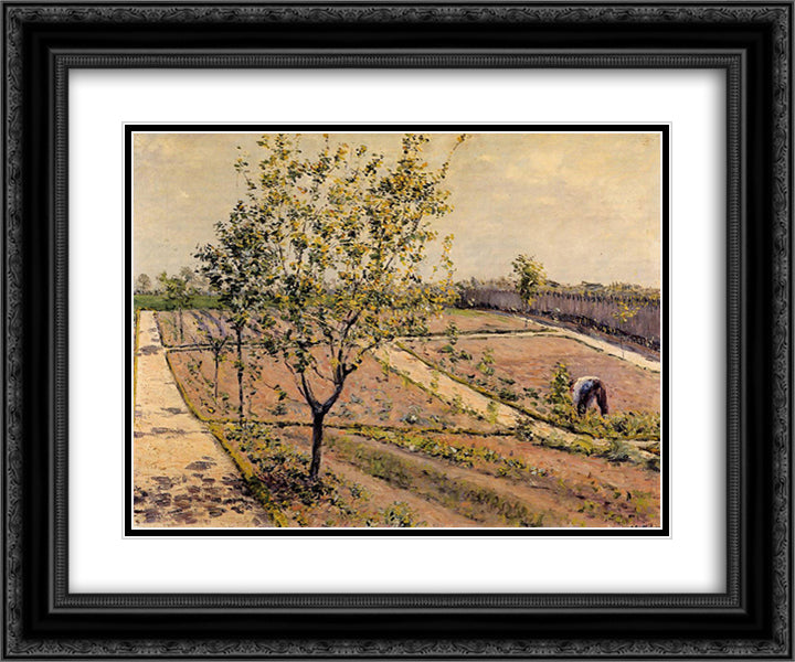 Kitchen Garden, Petit Gennevilliers 24x20 Black Ornate Wood Framed Art Print Poster with Double Matting by Caillebotte, Gustave