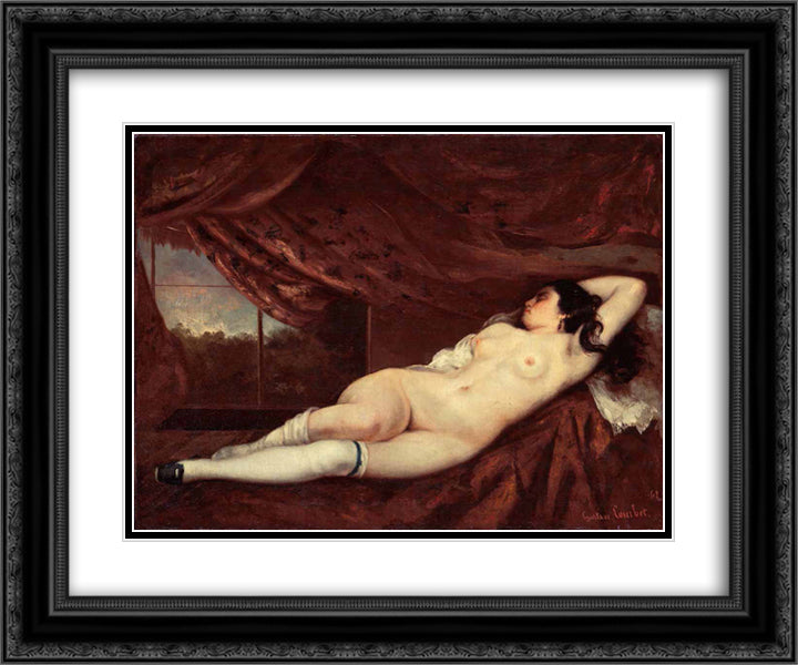 Sleeping Nude Woman 24x20 Black Ornate Wood Framed Art Print Poster with Double Matting by Courbet, Gustave