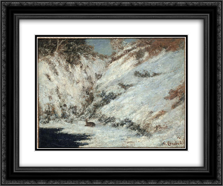 Snow Landscape in Jura 24x20 Black Ornate Wood Framed Art Print Poster with Double Matting by Courbet, Gustave