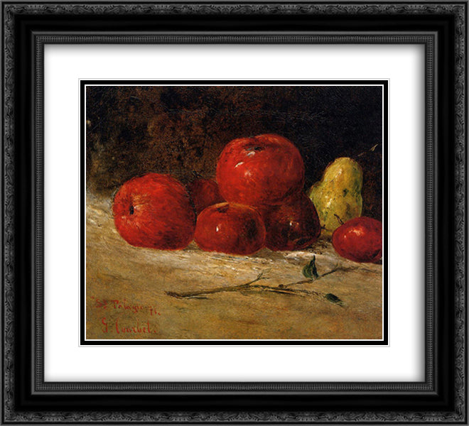 Still Life Apples and Pears 22x20 Black Ornate Wood Framed Art Print Poster with Double Matting by Courbet, Gustave