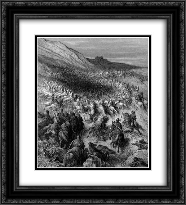 Crusaders surrounded by Saladin's army 20x22 Black Ornate Wood Framed Art Print Poster with Double Matting by Dore, Gustave