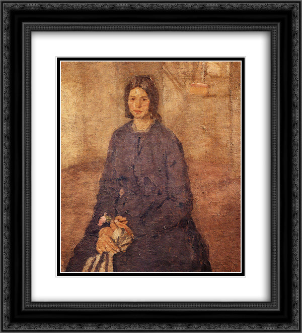 Girl Holding a Rose 20x22 Black Ornate Wood Framed Art Print Poster with Double Matting by John, Gwen