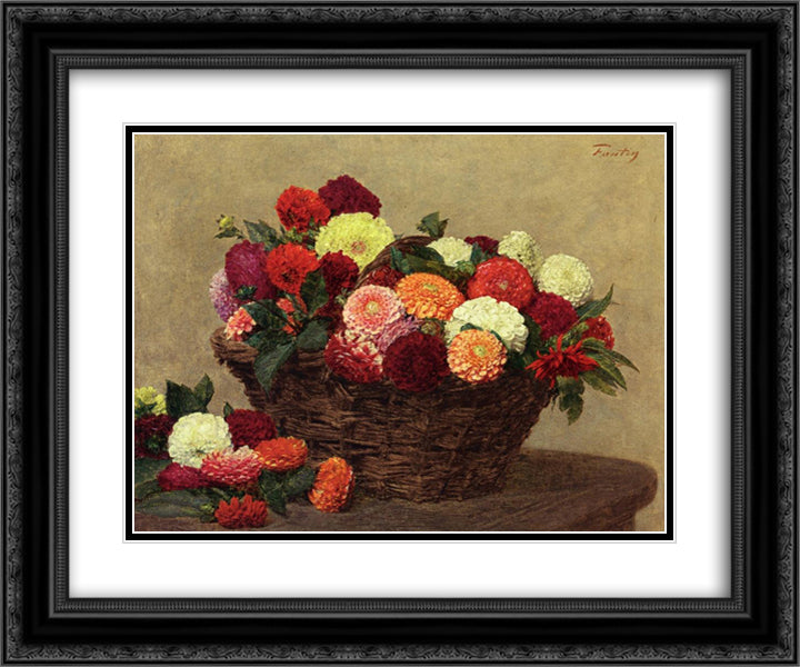 Basket of Dahlias 24x20 Black Ornate Wood Framed Art Print Poster with Double Matting by Fantin Latour, Henri