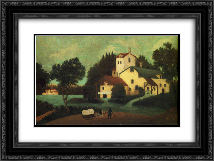 Wagon in Front of the Mill 24x18 Black Ornate Wood Framed Art Print Poster with Double Matting by Rousseau, Henri