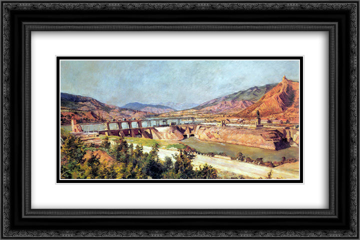 ZAGES. Dam on the Kura River and Highway of Georgian Military Road 24x16 Black Ornate Wood Framed Art Print Poster with Double Matting by Mashkov, Ilya