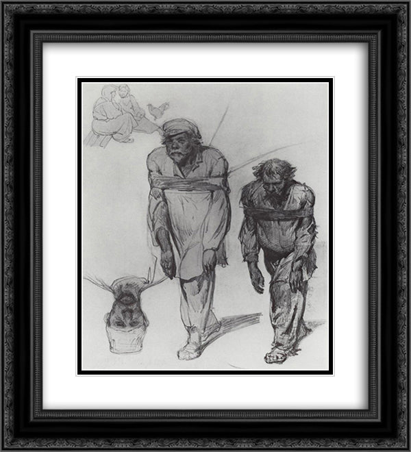 Barge Haulers Pulling on the Strap 20x22 Black Ornate Wood Framed Art Print Poster with Double Matting by Repin, Ilya