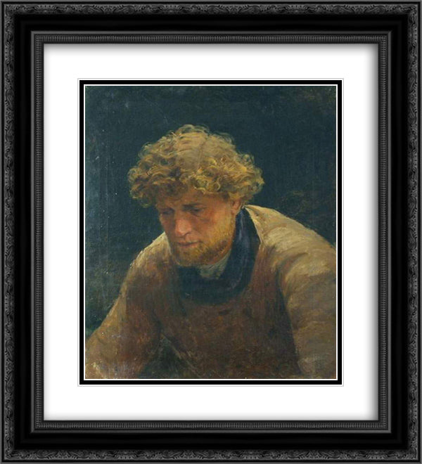Burlak 20x22 Black Ornate Wood Framed Art Print Poster with Double Matting by Repin, Ilya
