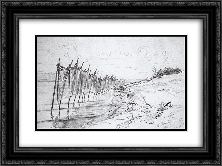 Fishing nets. Shiryaevo. 24x18 Black Ornate Wood Framed Art Print Poster with Double Matting by Repin, Ilya