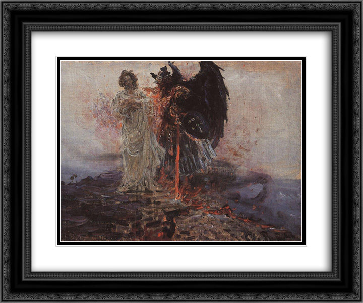 Follow me, Satan 24x20 Black Ornate Wood Framed Art Print Poster with Double Matting by Repin, Ilya