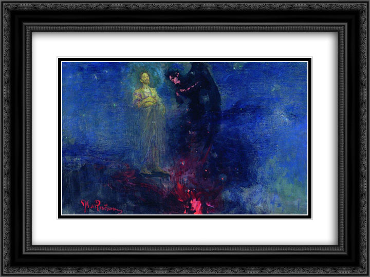 Get away from me, Satan 24x18 Black Ornate Wood Framed Art Print Poster with Double Matting by Repin, Ilya