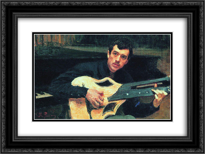 Portrait of the Artist V.S. Svarog 24x18 Black Ornate Wood Framed Art Print Poster with Double Matting by Repin, Ilya