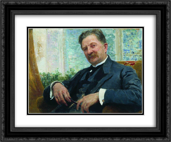 Portrait of Vengerov 24x20 Black Ornate Wood Framed Art Print Poster with Double Matting by Repin, Ilya