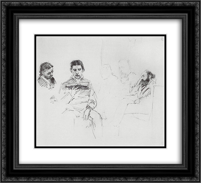 Reading Aloud 22x20 Black Ornate Wood Framed Art Print Poster with Double Matting by Repin, Ilya