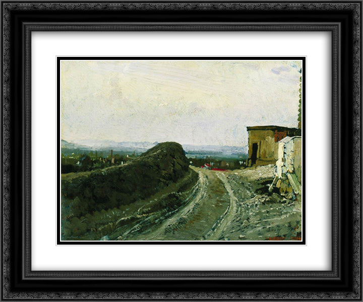 The road from Montmartre in Paris 24x20 Black Ornate Wood Framed Art Print Poster with Double Matting by Repin, Ilya