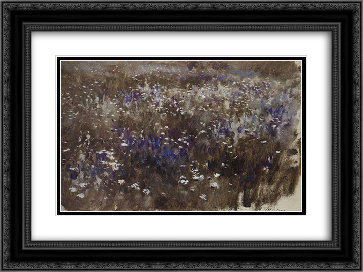 Flowery meadow 24x18 Black Ornate Wood Framed Art Print Poster with Double Matting by Levitan, Isaac