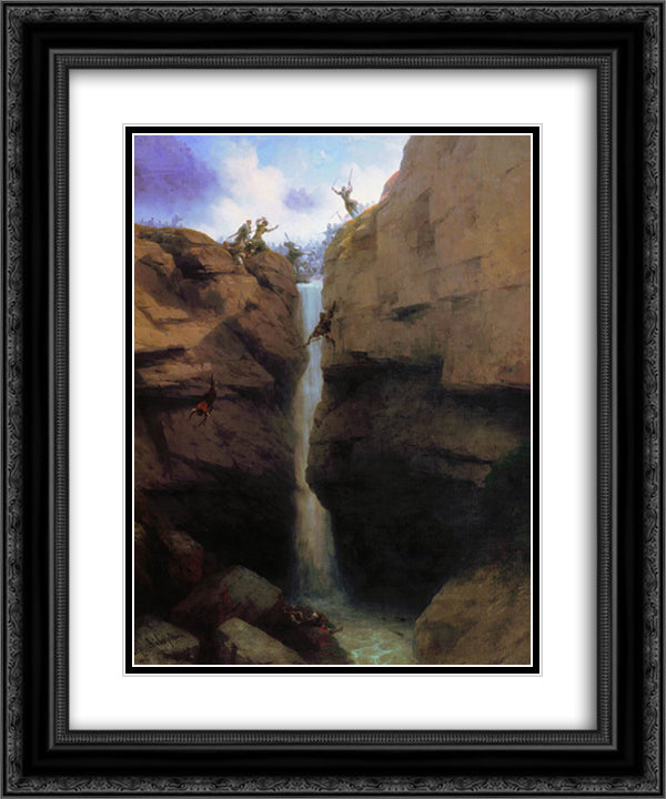 Clash soldiers with murids on Gunib 20x24 Black Ornate Wood Framed Art Print Poster with Double Matting by Aivazovsky, Ivan