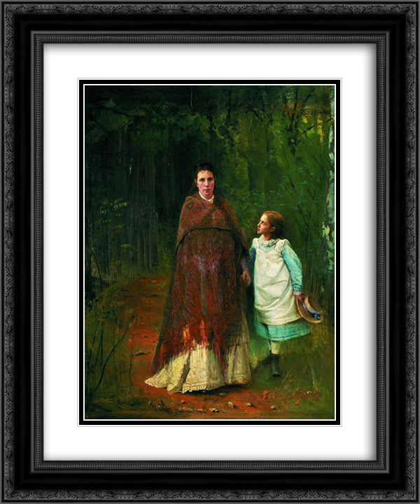 Portrait of Sofia Nikolaevna and Sophia Ivanovna Archaeology wife and daughter of the artist 20x24 Black Ornate Wood Framed Art Print Poster with Double Matting by Kramskoy, Ivan