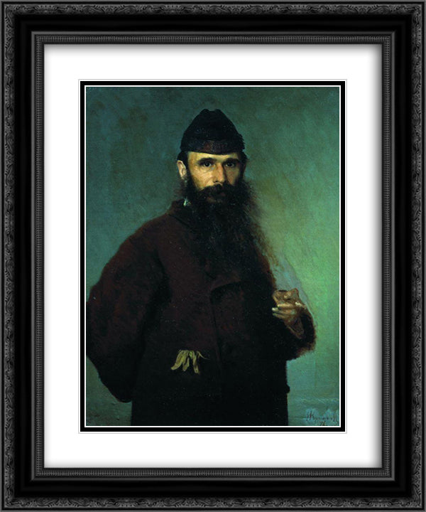 Portrait of the artist Alexander Dmitrievich Litovchenko 20x24 Black Ornate Wood Framed Art Print Poster with Double Matting by Kramskoy, Ivan