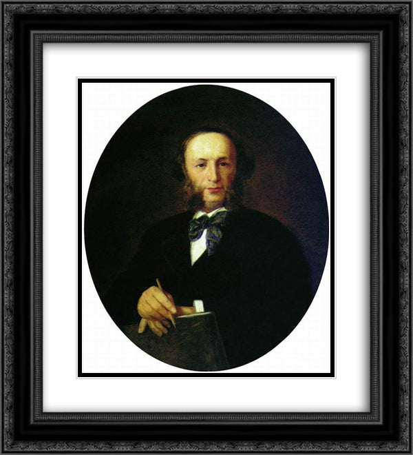 Portrait of the Artist I.K. Aivazovsky 20x22 Black Ornate Wood Framed Art Print Poster with Double Matting by Kramskoy, Ivan